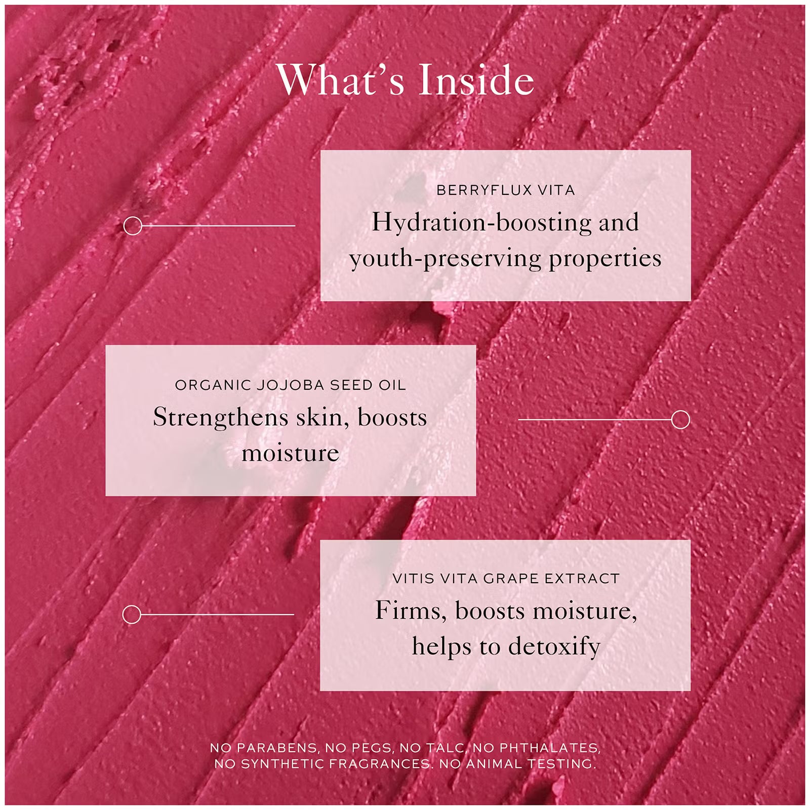 Caprylic/Capric Triglyceride, Kaolin, Caprylyl Caprylate/Caprate, Simmondsia Chinensis (Jojoba) Seed Oil, Polyethylene, Mica, Polyhydroxystearic Acid, Lecithin, Behenylcarbamoylpropyl Polysilsesquioxane, Tocopherol, Ascorbyl Palmitate, Citric Acid, Rubus Idaeus Leaf Cell Culture, Carmine (Ci 75470). May Contain: Titanium Dioxide Ci 77891, Iron Oxides Ci 77491, Iron Oxides Ci 77492, Iron Oxides Ci 77499, Red 30 Lake Ci 73360, Blue 1 Lake Ci 42090, Red 7 Lake Ci 15850, Yellow 5 Lake Ci 19140.